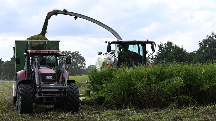 Hamburg/ Berlin, 4. September 2023. Für die Energiewende in Deutschland spielt auch Biogas eine wichtige Rolle. Es entsteht bei der Vergärung von Biomasse, die vor allem auf landwirtschaftlichen Flächen produziert wird. Während sich die Getreideernte für die Produktion von Lebensmitteln und Tierfutter in manchen Regionen Deutschlands in diesem Jahr lange verzögert hat, liegt das Substrat von ertragreichen Wildpflanzenkulturen zur Biomasseproduktion längst im Silo oder im Fermenter. Denn geerntet werden die Kulturen im Hochsommer unmittelbar vor der Hauptblüte. Dann hat dasErntesubstrat das höchste Methanpotential. Solange die Kulturen nicht klatschnass sind, spielt der Feuchtegehalt für die Ernte keine Rolle. „Auch in diesem Jahr konnten manche Landwirte wieder über 45 Tonnen Frischmasse des Wildpflanzensubstrats je Hektar erzielen,“ sagt Simon Hein, der für die Deutsche Wildtier Stiftung das Kooperationsprojekt Bunte Biomasse koordiniert. Bis zum Eintritt derVegetationsruhe im Herbst wachsen die echten Stauden nun bereits wieder auf und bilden über den Winter einen Rückzugsraum für zahlreiche Tierarten. Gleichzeitig schützen sie die Flächen vor Erosion durch Wind und Wasser.