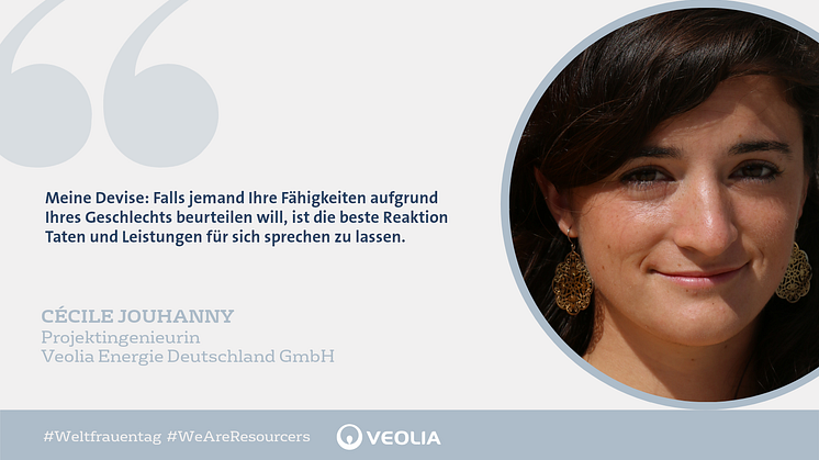 “Falls jemand Ihre Fähigkeiten aufgrund Ihres Geschlechts beurteilen will, ist die beste Reaktion Taten und Leistungen für sich sprechen zu lassen”, ermutigt Cécile Jouhanny, Projektingenieurin bei Veolia Energie Deutschland, alle Frauen.